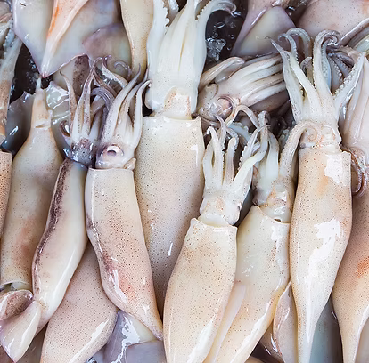 Calamares frescos y congelados, con origen controlado y procesamiento certificado.